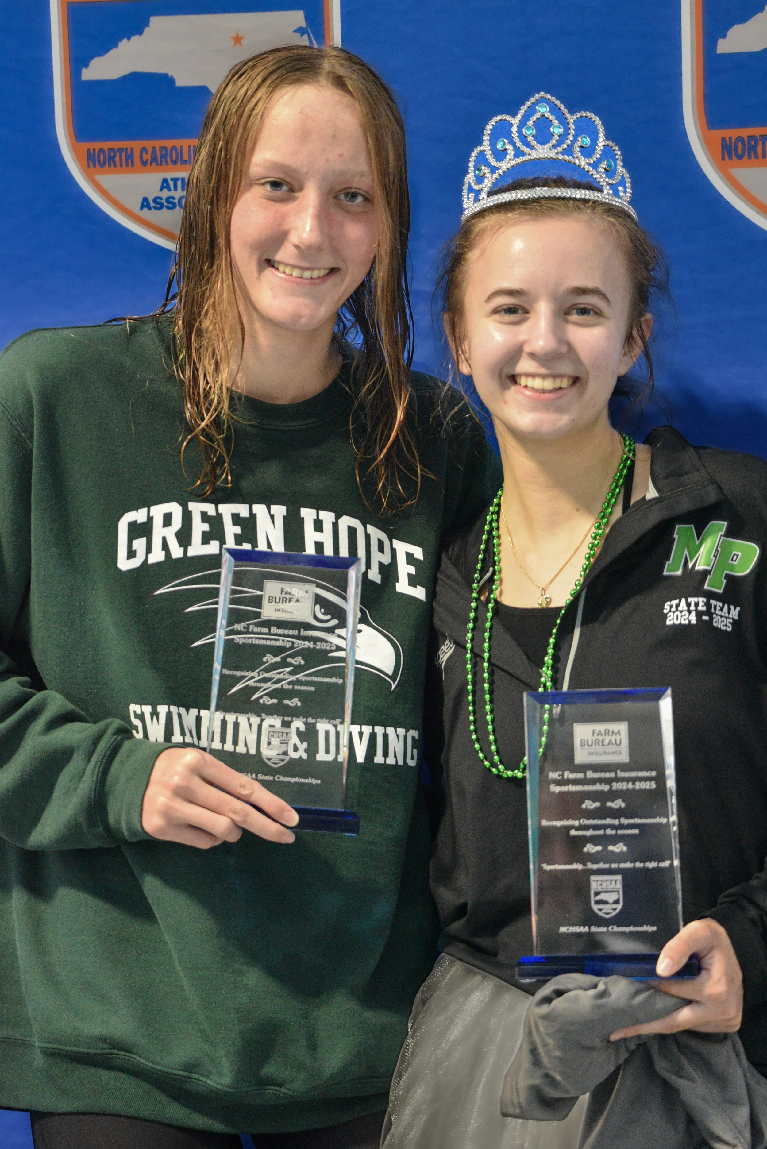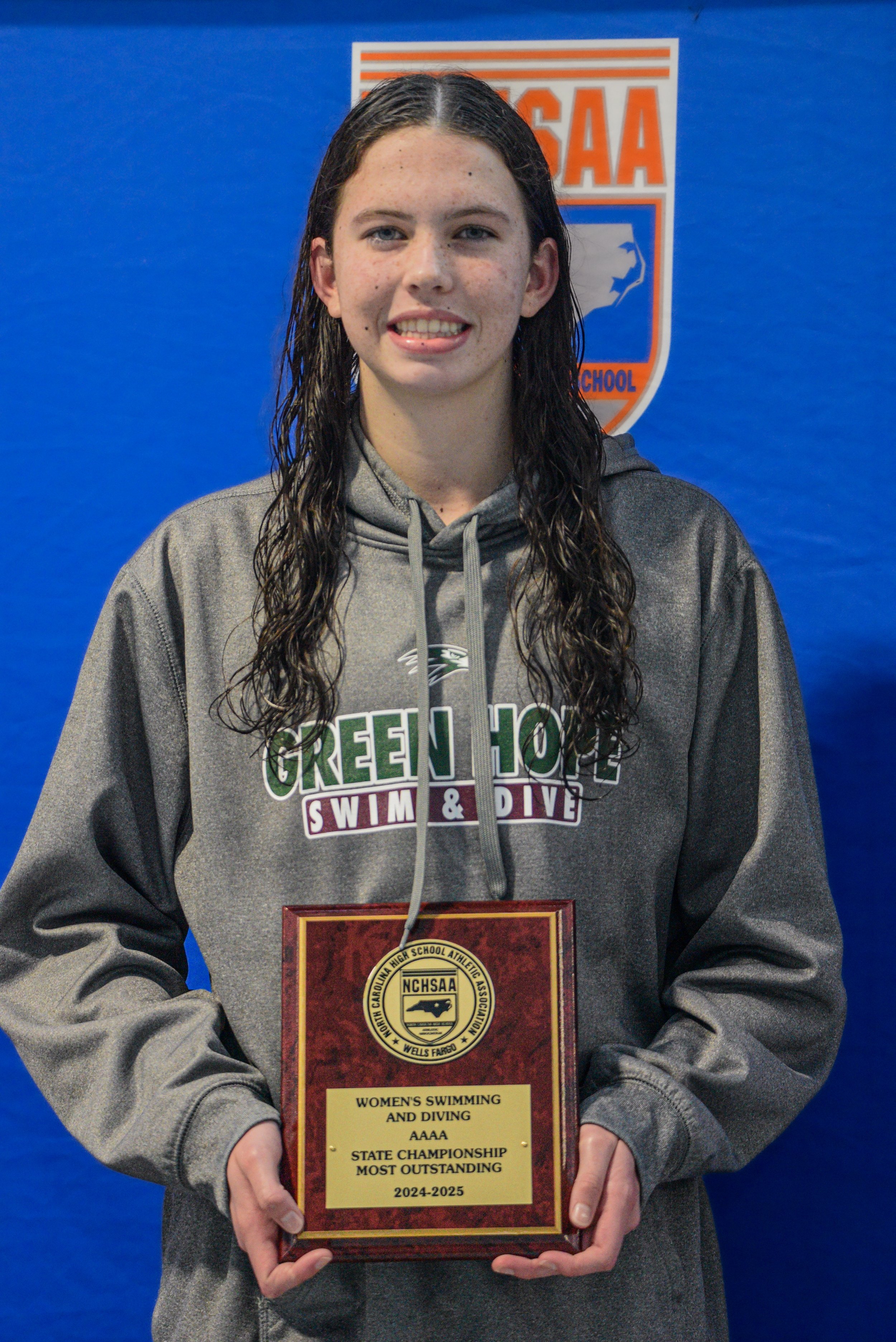 Green Hope’s Sloane Whelehan shined, winning the 200-yard Freestyle and anchoring the first-place 200-yard Freestyle Relay. She also took the 50-yard Freestyle title, earning Most Outstanding Swimmer honors. In diving, Charlotte Catholic’s Reagan Leckner won with a score of 443.35, with East Chapel Hill’s Laila Kwong finishing second.