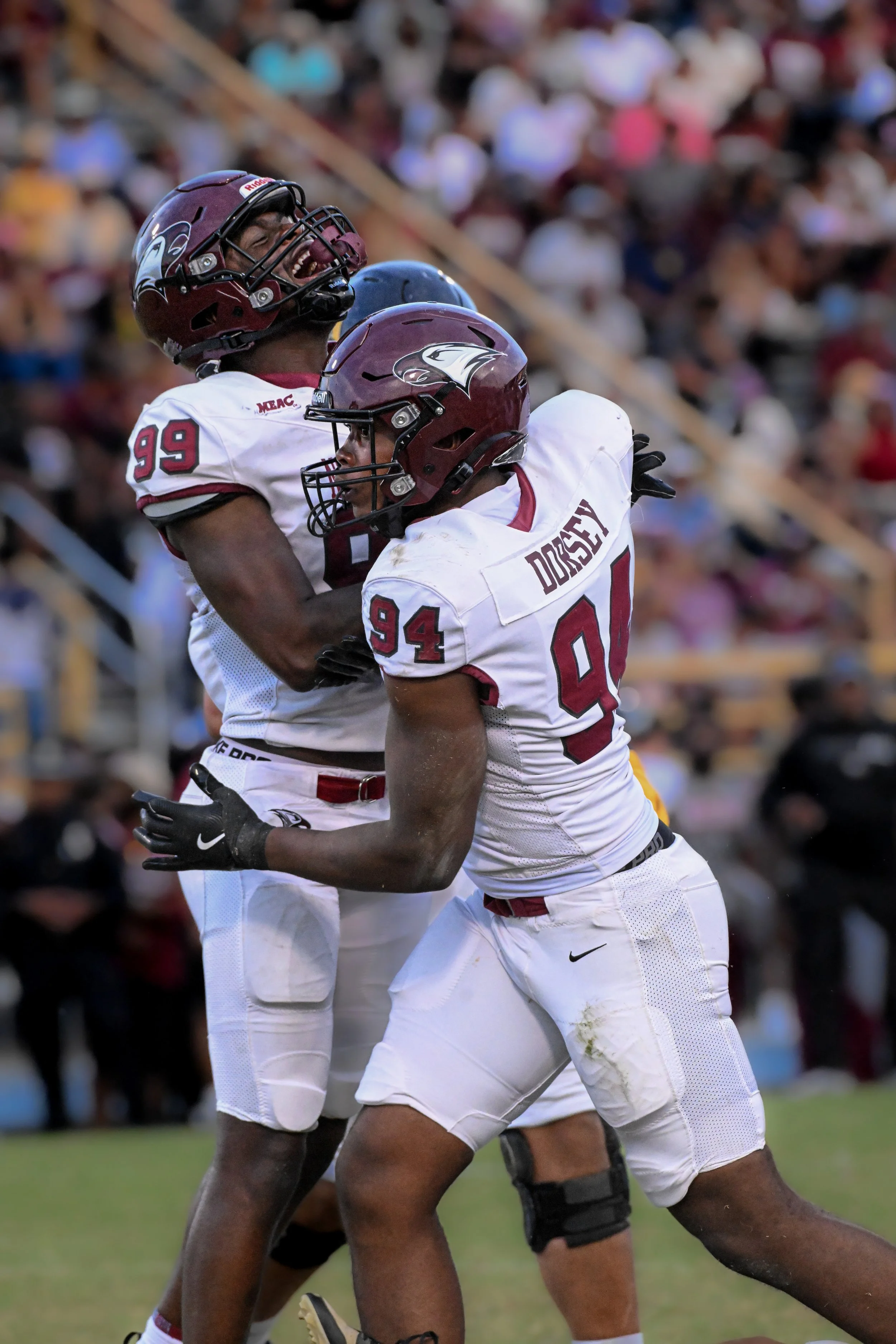 Quarterback Walker Harris efficiently directed the offense, completing 22 of 29 passes for 380 yards and three touchdowns, while running back Arthur Rodgers added 129 rushing yards and two scores. In all, NCCU piled up nearly 750 yards of total offense, the most in school history.