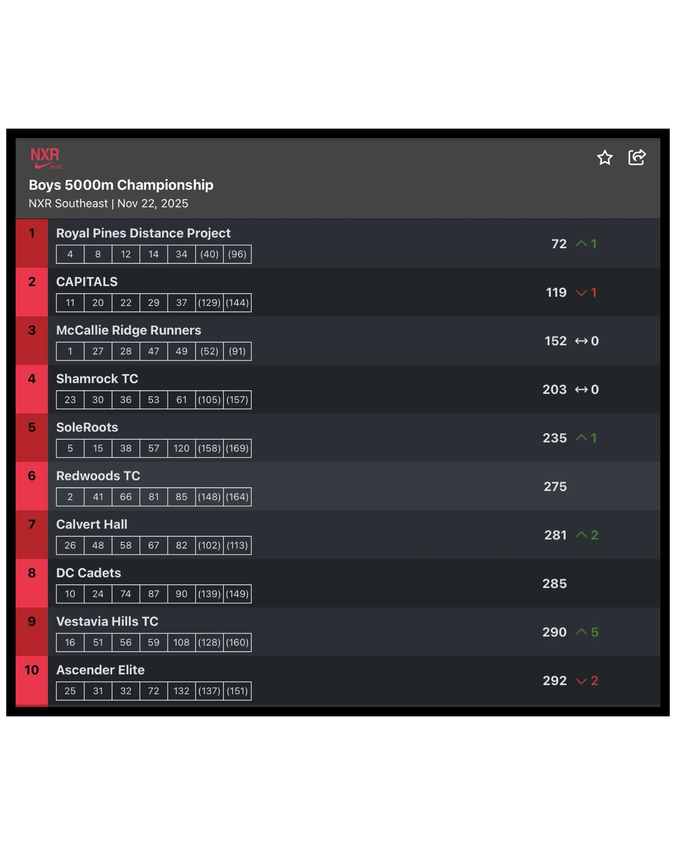 On the team side, Christ School’s Royal Pines Distance Project claimed the boys team championship with 72 points